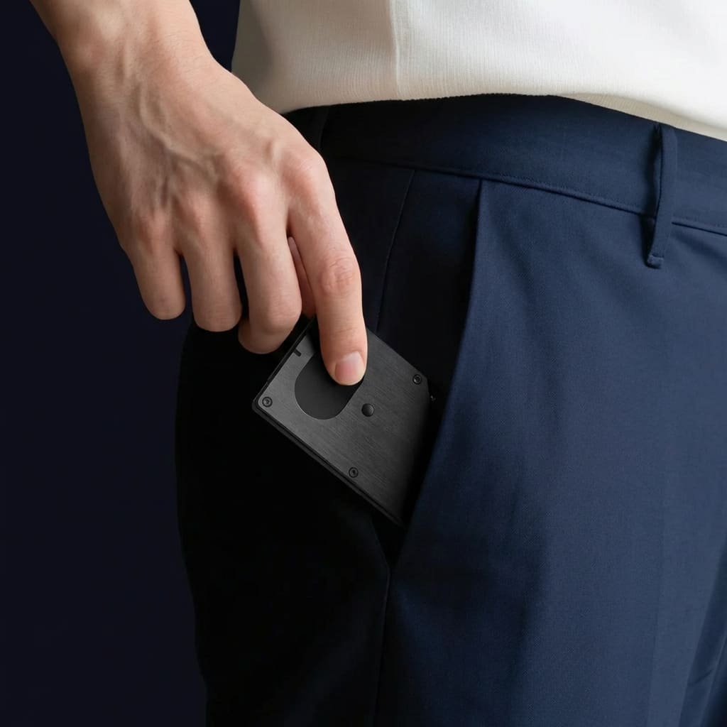 Avec une épaisseur de seulement 0,8 cm, ce porte-cartes redéfinit le concept de "Slim Wallet". Sa pince à billets intégrée et son format compact permettent d'emporter l'essentiel sans l'encombrement d'un portefeuille traditionnel.