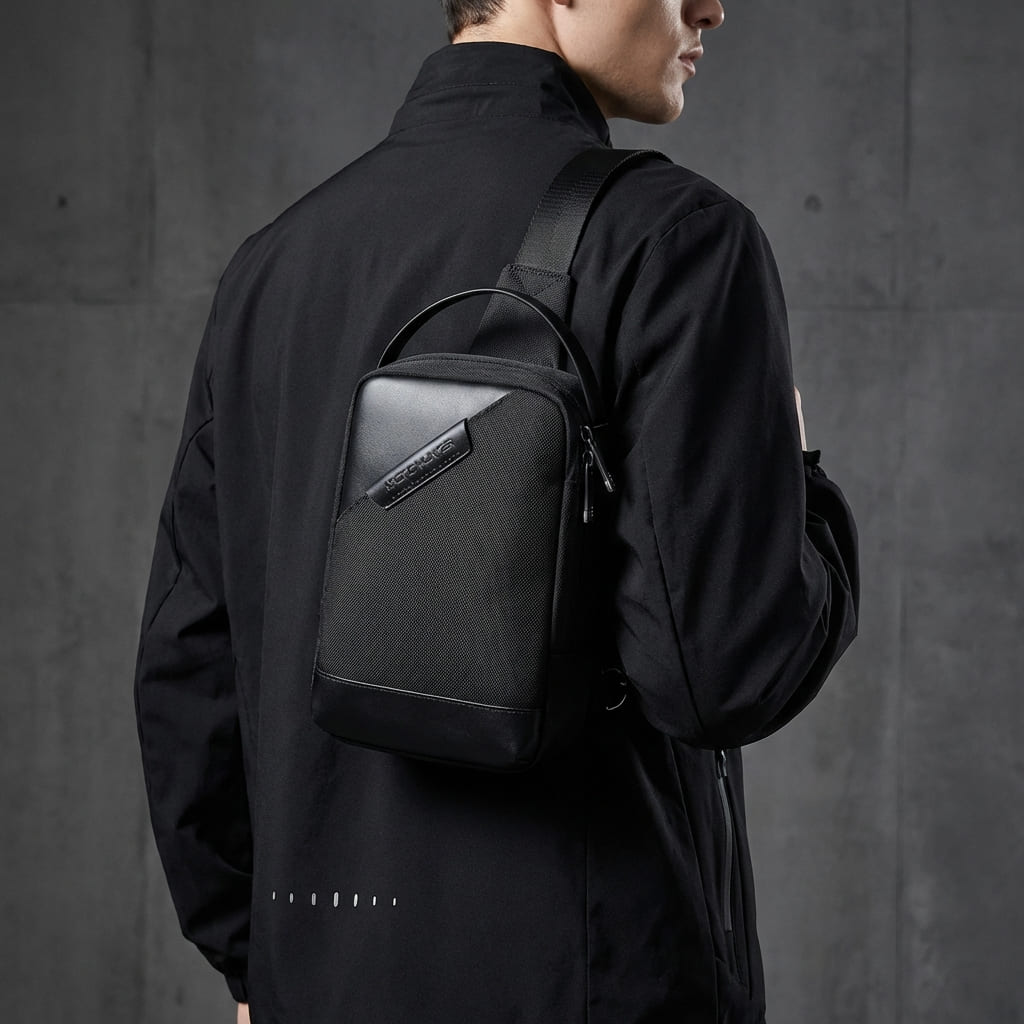 Alliez design avant-gardiste et fonctionnalité urbaine avec la sacoche Crossbody Géométrique. Conçue pour l’homme moderne, elle se distingue par sa structure visuelle unique et sa fabrication en nylon haute performance. Que ce soit pour vos déplacements quotidiens ou vos activités sportives, ce sac offre une protection optimale contre les éléments tout en affirmant un style résolument contemporain.